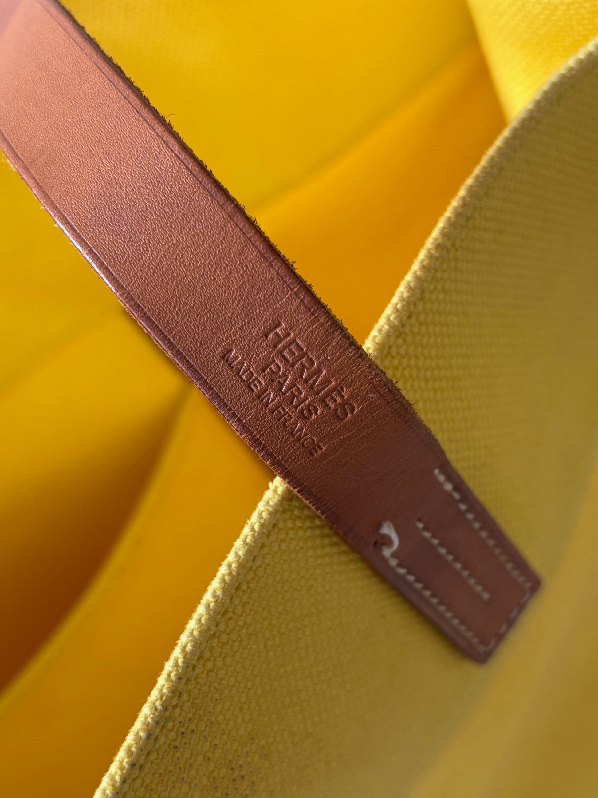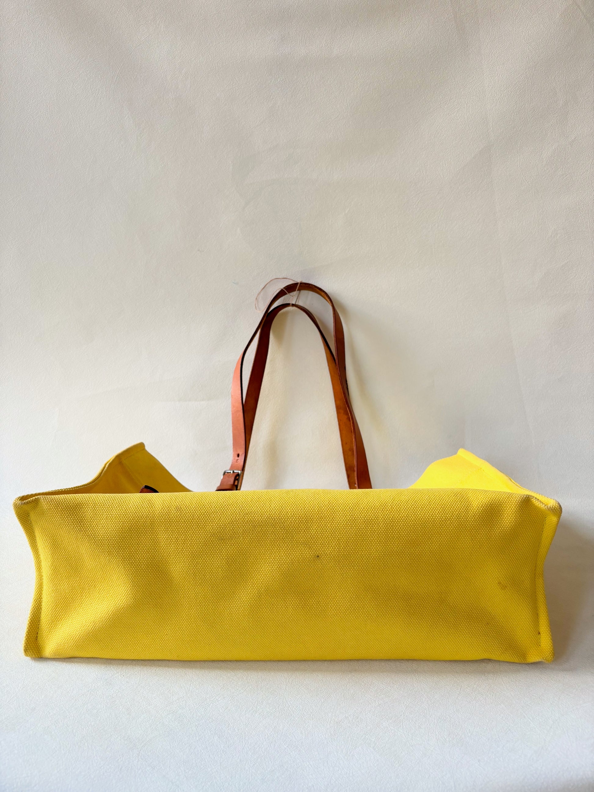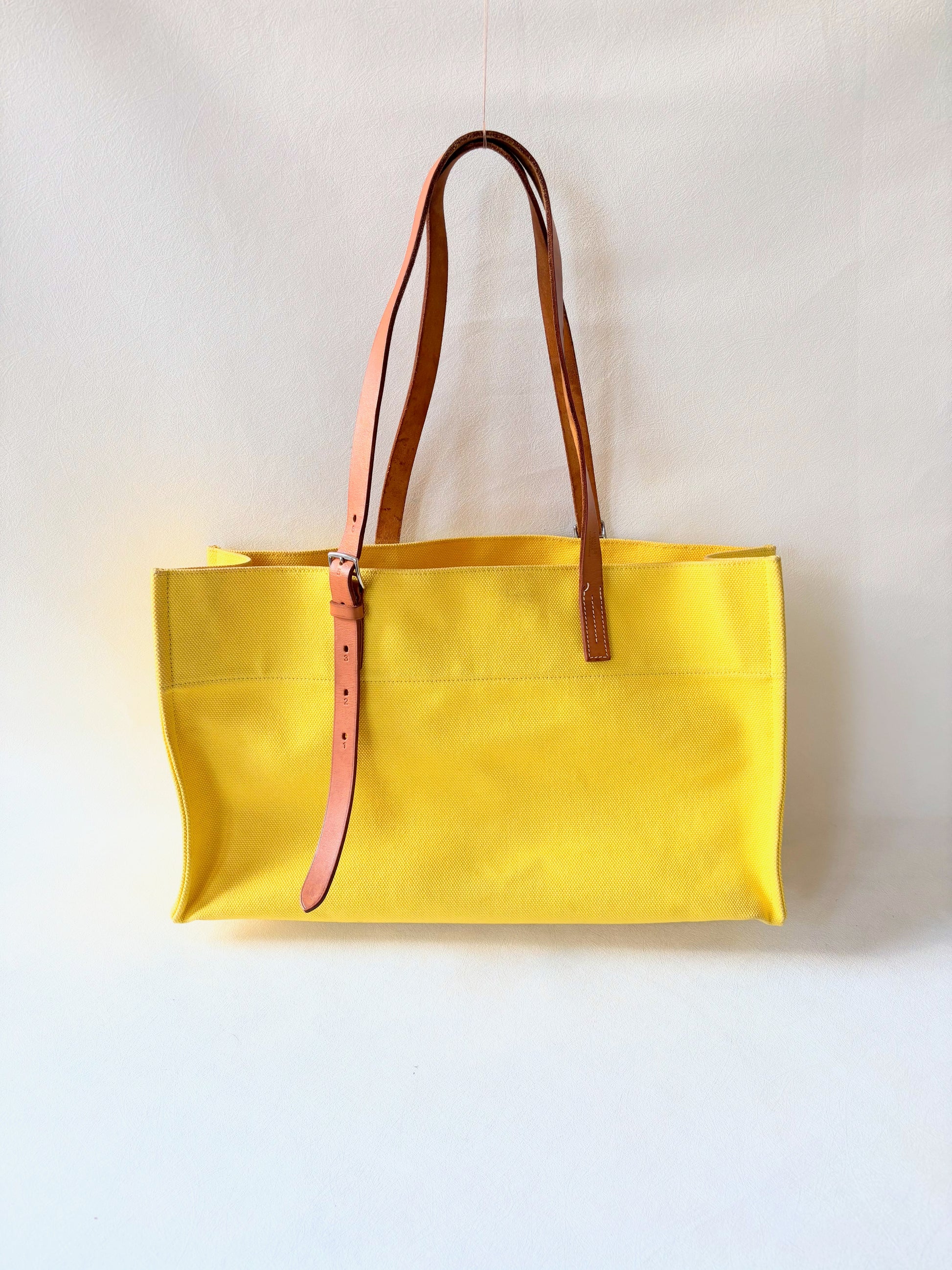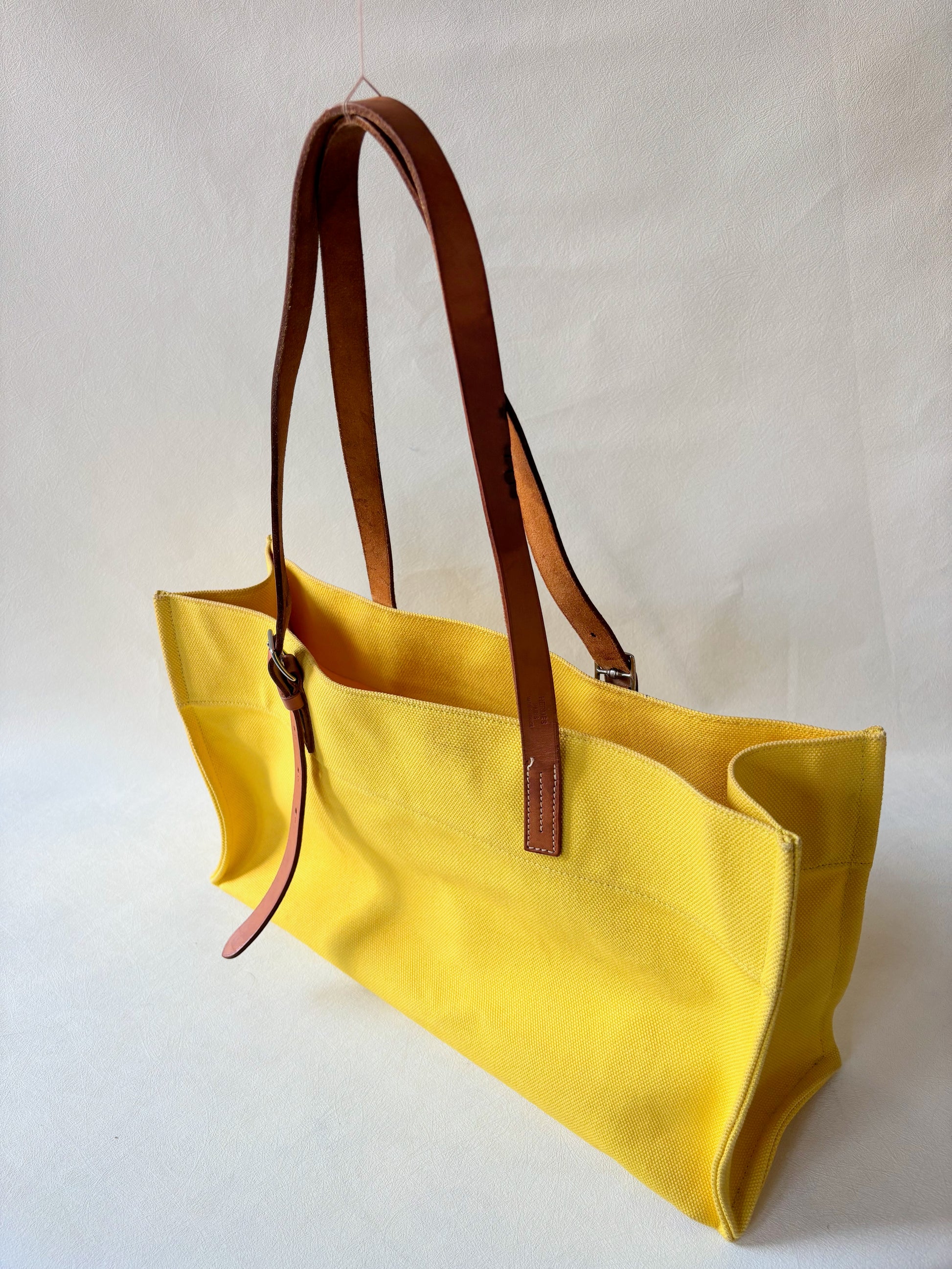 * Sangles en cuir camel surpiquée de fil de coton écrue, ajustables, pour un porté main ou épaule