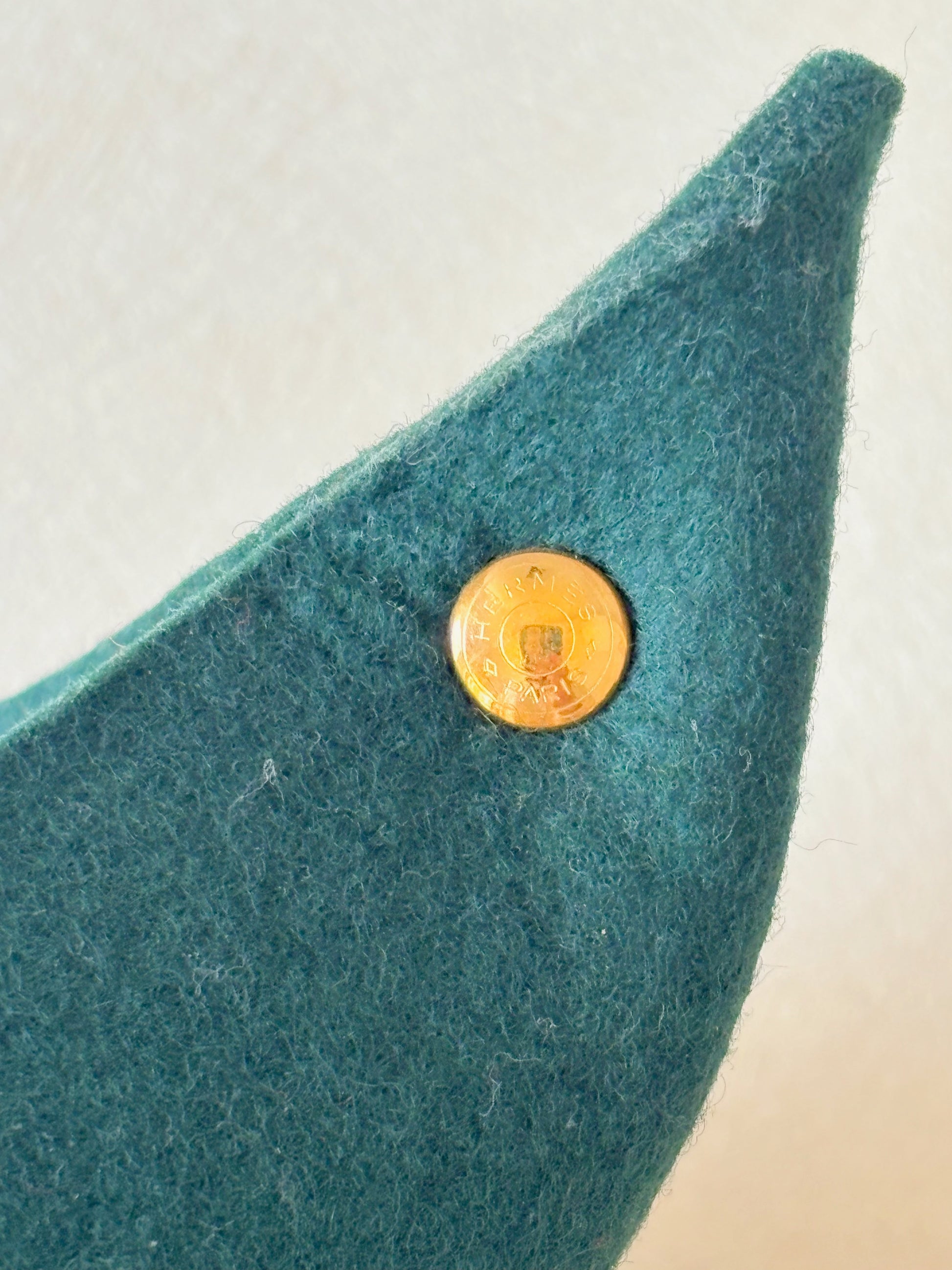 * En feutre de laine vert, pressions en bijouterie dorée siglée HERMÈS