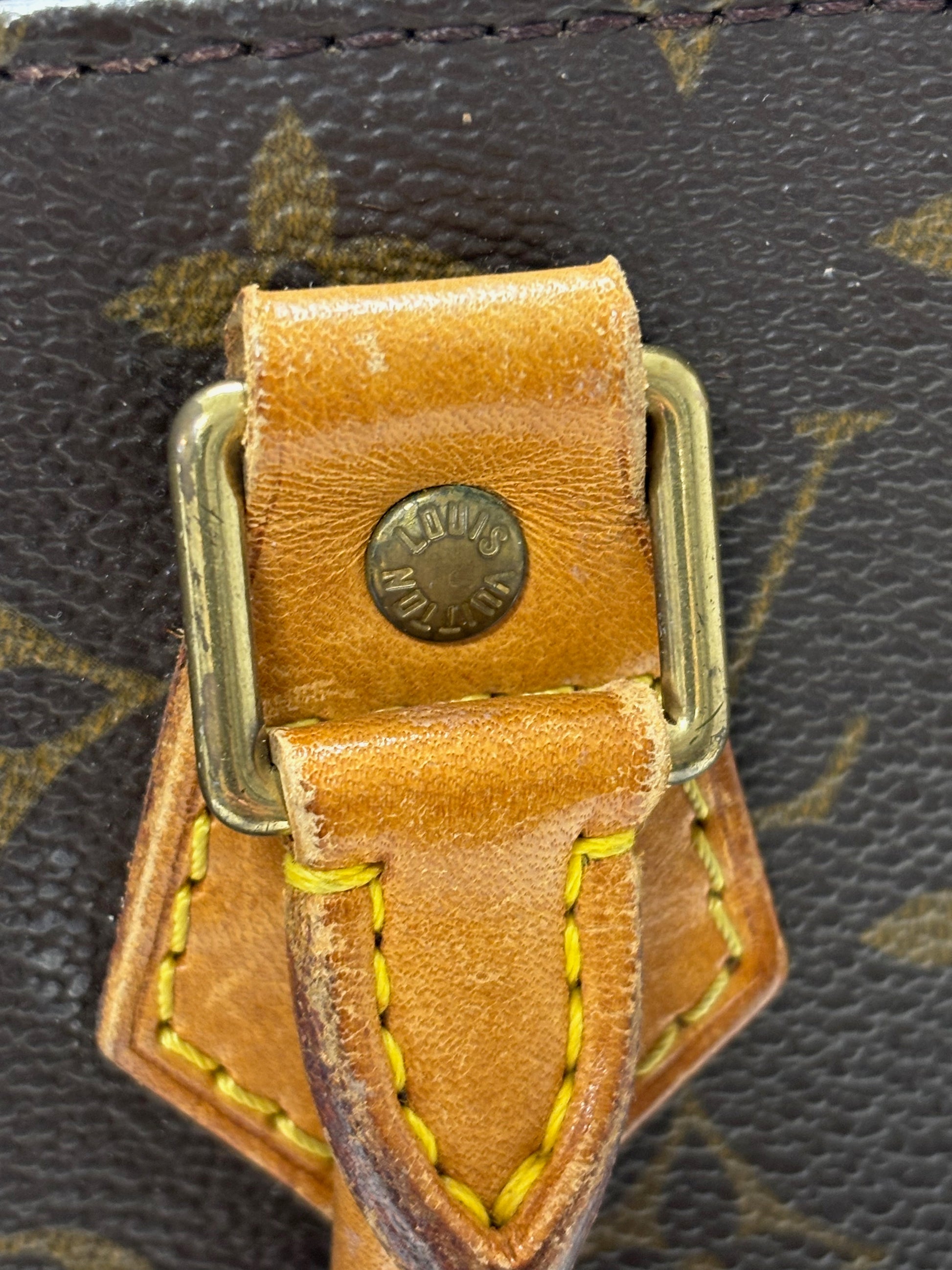 * État: Toile extérieure en bon état, poignées en cuir en bon état